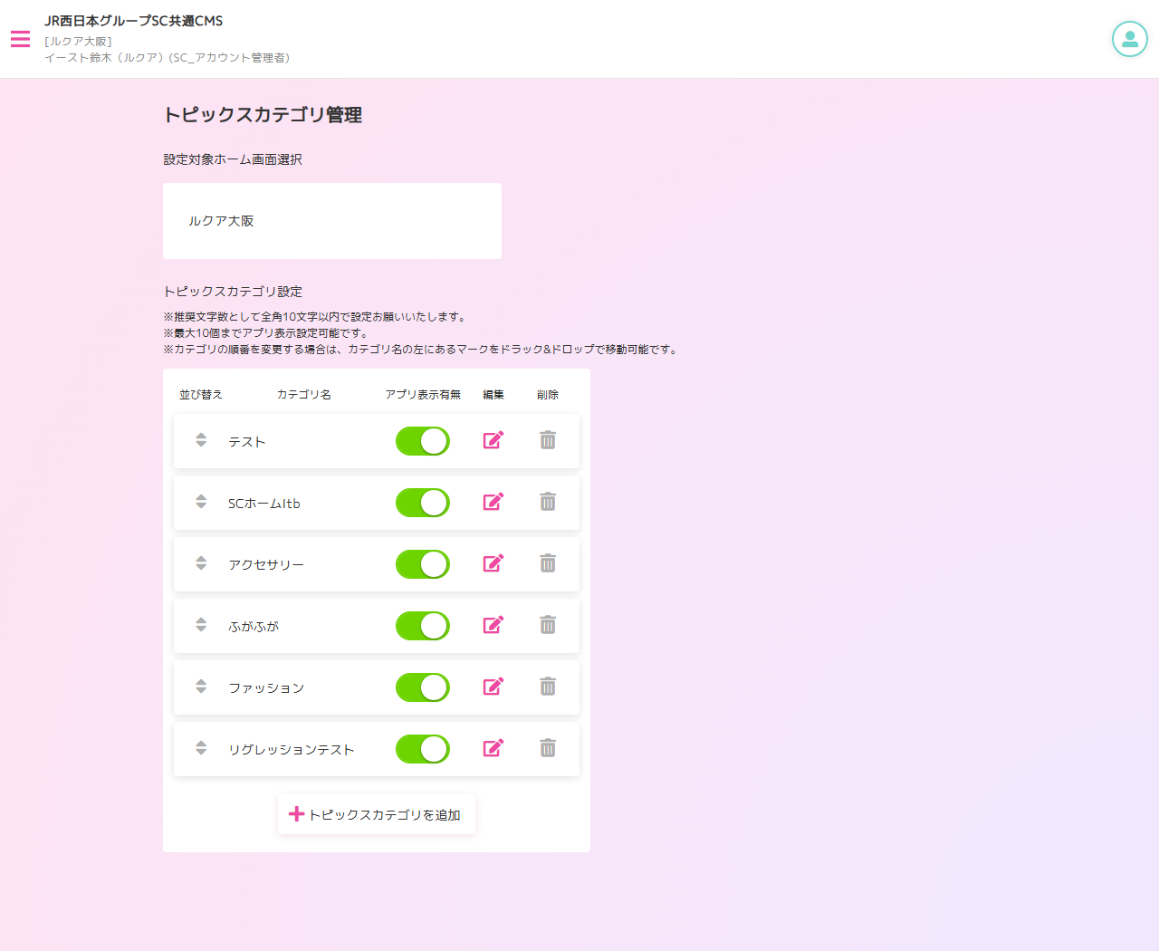トピックスカテゴリ管理画面