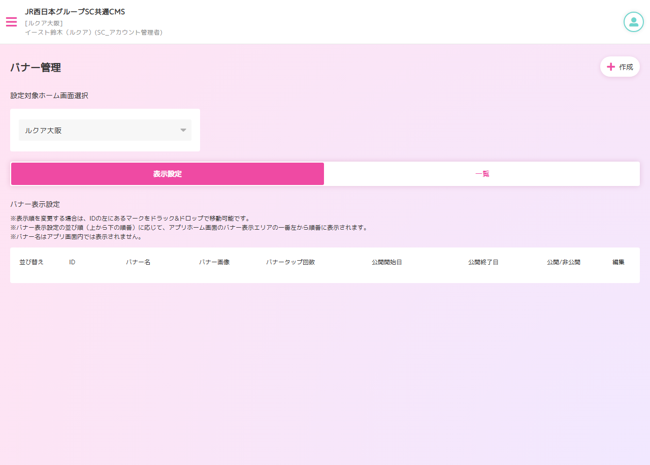 バナー管理画面が表示されます。